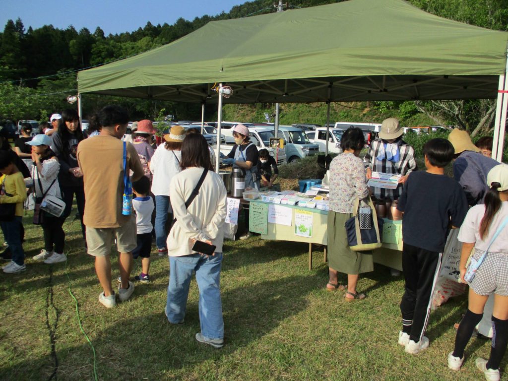 水辺の楽校特設ステージを舞台に、山浦保育園と山香こども園のみなさんの踊りや、地元の音楽好きで結成されたバンドの演奏などが披露されました。軽食コーナーでは、カレーやクレープをはじめ、コーヒーや山浦の野草茶、「ほんだバラ香園」さんの特製バラジュース、杵築市商工会青年部が開発したクラフトコーラ「もののふコーラ」も販売され、にぎわいを見せていました。