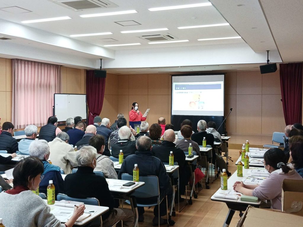 辻生さんは、1995年の阪神・淡路大震災を経験されています。現在は、杵築市の防災士として、また女性消防団員として地域の防災・減災に尽力されています。災害に対して、日頃から備えることの大切さを、ご自身の経験や、防災かるたを用いてわかりやすく説明してくださいました。昨年発生した能登半島地震被災地での支援活動についてもお話ししてくださいました。