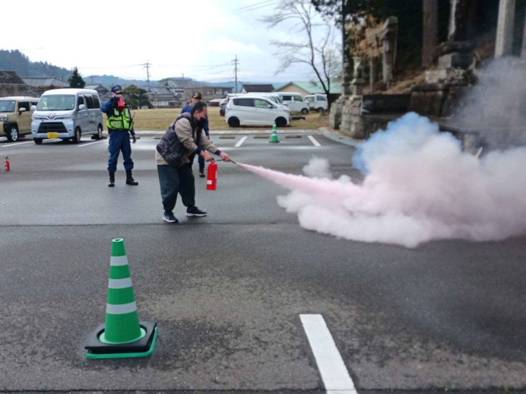 訓練の最後には、杵築速見消防署山香出張所のみなさんに、消火器の使い方を教えていただきました。地震や火災をはじめ、いつ起きてもおかしくない災害に備えることの重要性を再確認する訓練となりました。