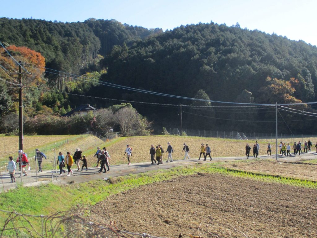 ウォークには、市内外から70名ほどのご参加がありました。『世界農業遺産 山香ふるさとウォークの会』のみなさんに先導してもらいながら、かつてフランシスコ・ザビエルも辿った道を歩いてもらいました。当日の朝は冷え込みましたが、コミュニティセンターを出発する時にはかなり気温も上がり、ジャケットを脱いで歩く方も多かったです。