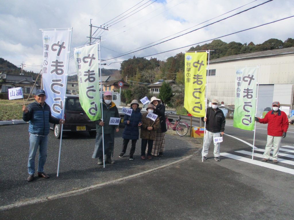 山浦郵便局前の交差点、地元のみなさんの声援が選手の背中を後押しします。