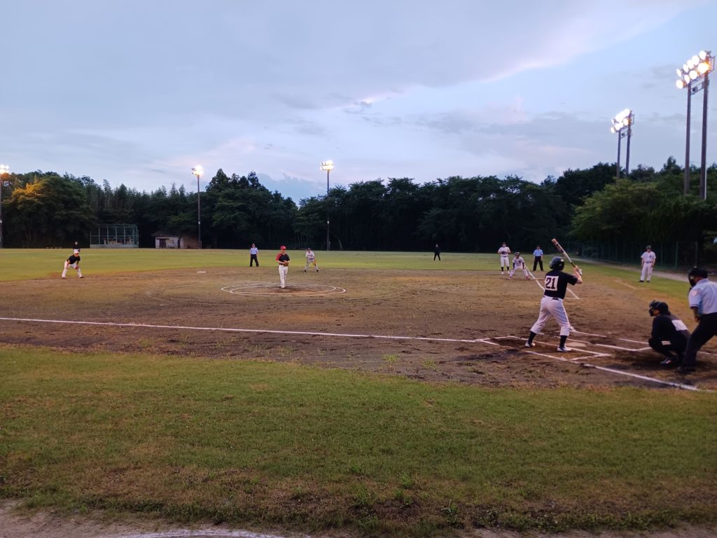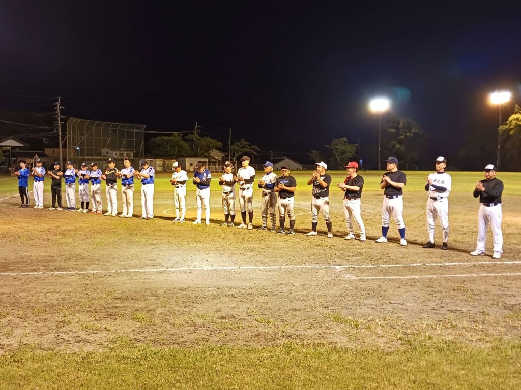 19時プレーボール。山香町では毎年7月中旬に開催されています。